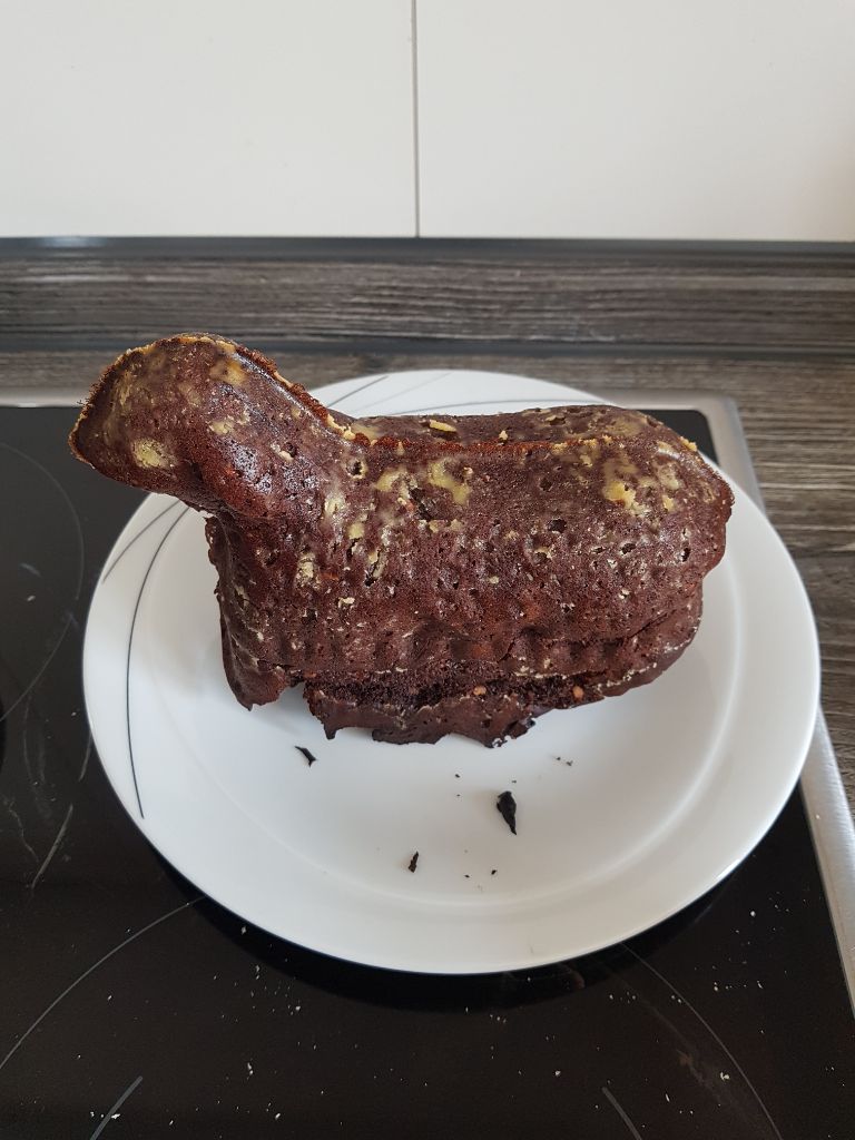 In die Backform geben und 35- 40 min auf der unteren Schiene backen. Fertig ist das Lämmchen, wenn kein Teig mehr am Teststäbchen klebt. Aus dem yBachofen nehmen und in der Form auskühlen lassen (es wird beim erkalten noch fester und es zerbricht nicht beim Herausnehmen).